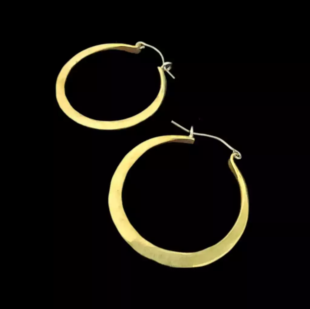Par de aros medianos de argollas martilladas y aplanadas. Diámetro de 4 cm. Pieza realizada en bronce. Fabricados y diseñados en Argentina.