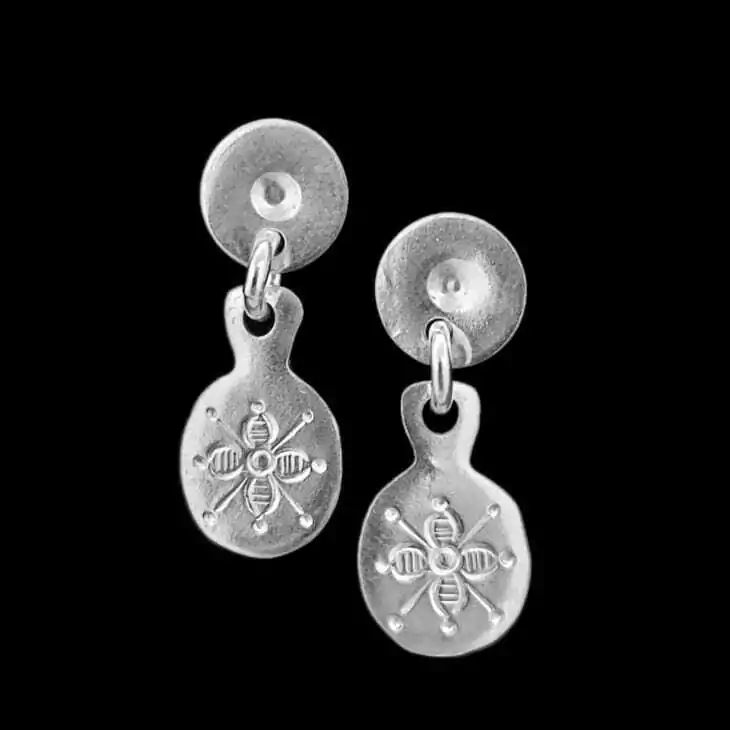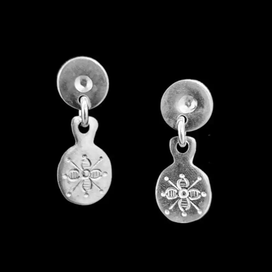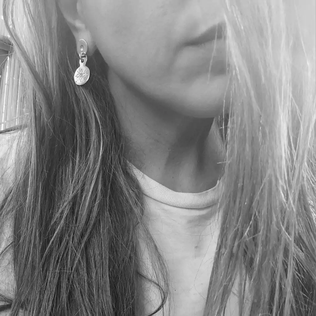 Par de aros chicos de inspiración mapuche. Largo total 3 cm. Pieza realizada en plata baja. Fabricados y diseñados en Argentina.