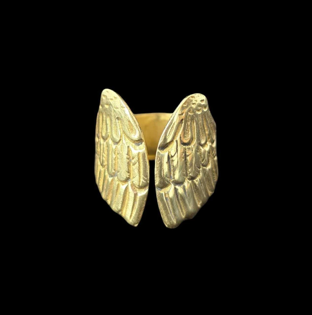 Special open alliance ring with chisel details of wings. Maximum height of 2 cm. Piece made in bronze. Made in Argentina.