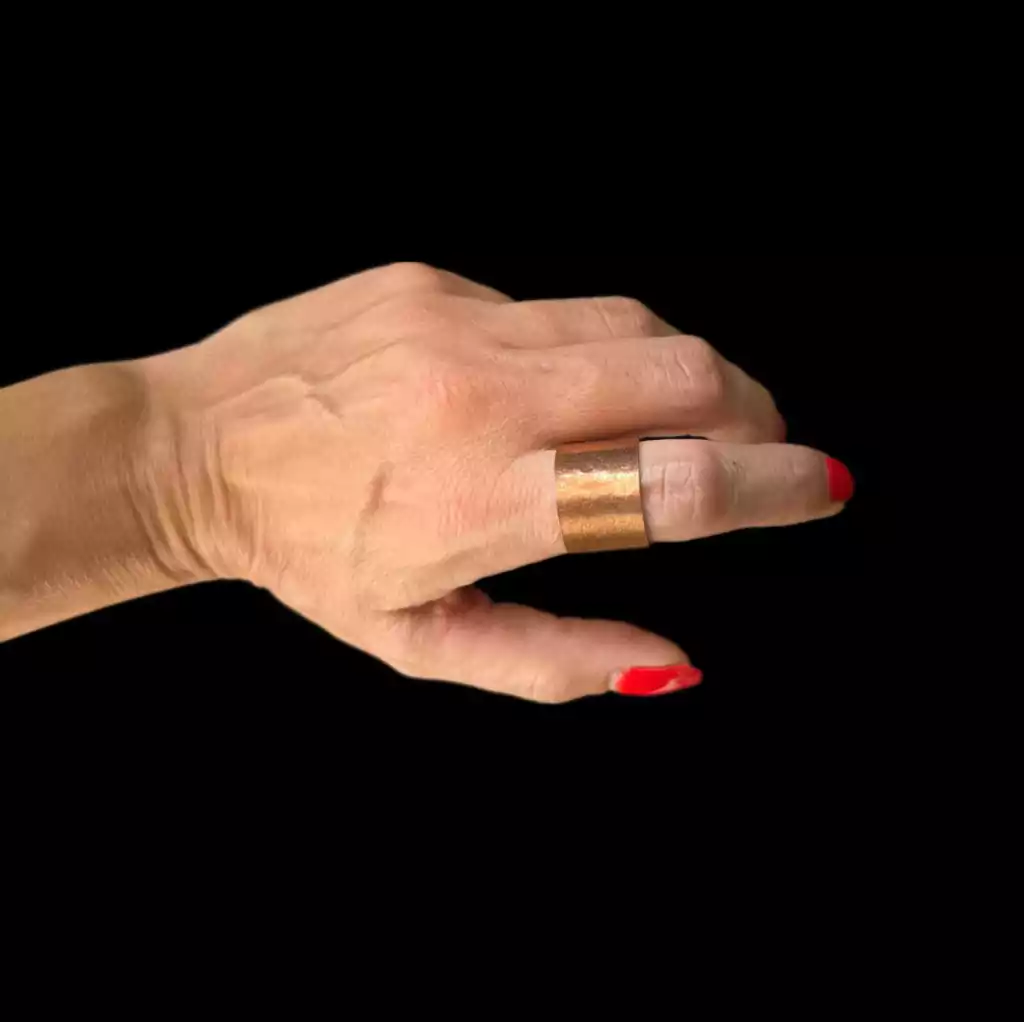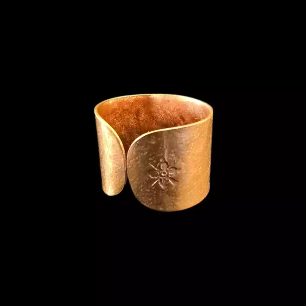 Hammered texture wedding band, 2 cm wide. Open design to adjust its size! Piece made of copper.