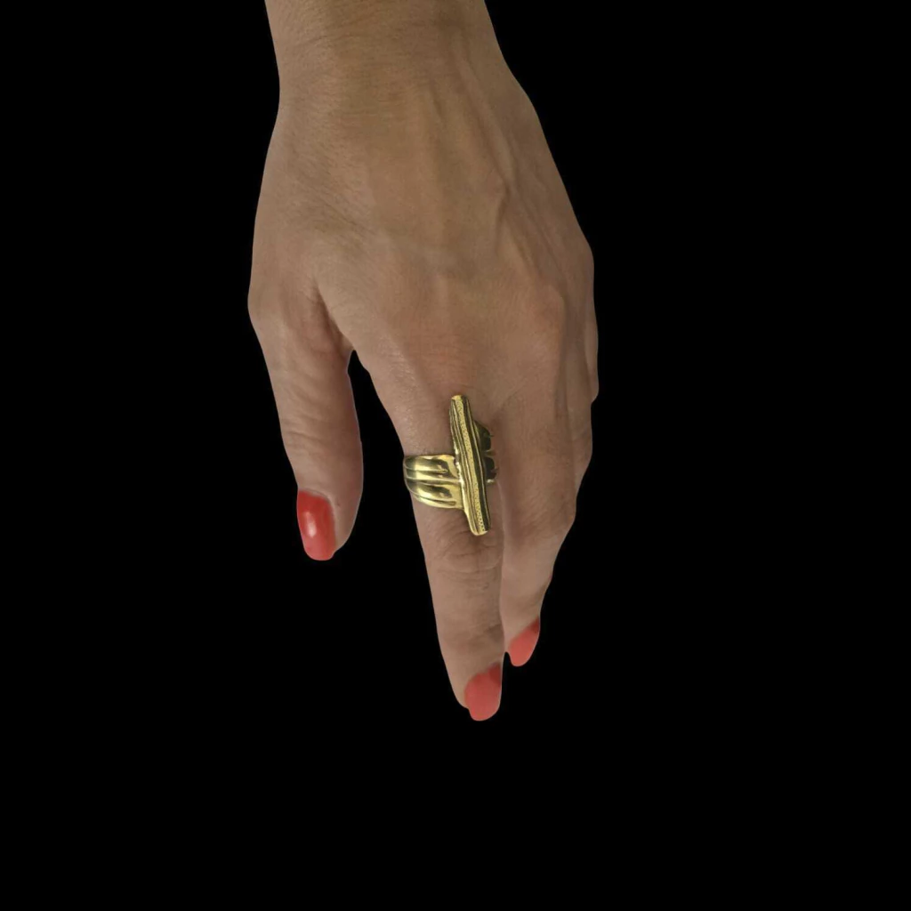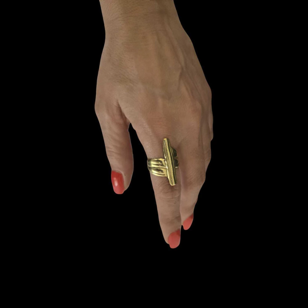 Special ring worked in high and low relief. Height of 3 cm. Open band to adjust its size! Piece made of bronze. Designed and manufactured in Argentina.