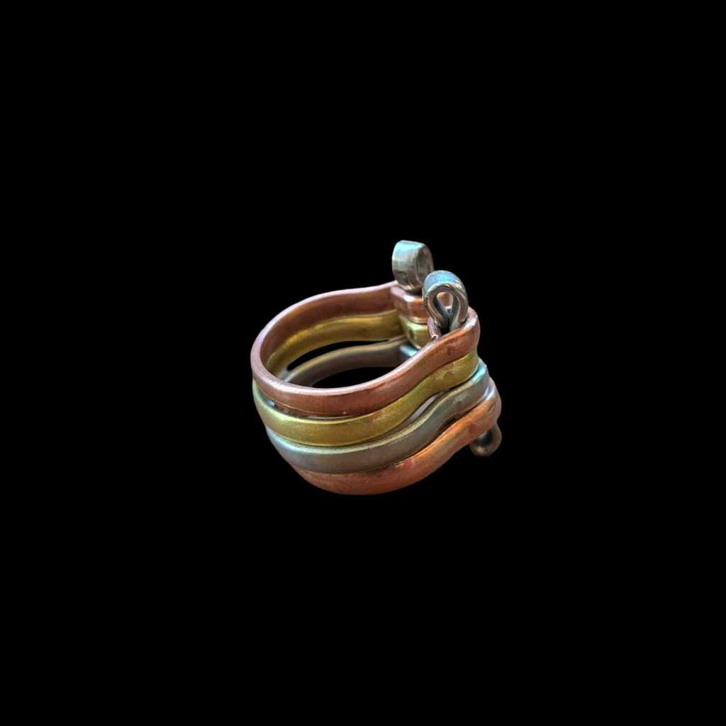 Special ring entirely handmade, 1.5 cm wide. Open band to allow for adjustable sizing! Piece made with combined materials: alpaca, bronze, and copper. Designed and manufactured in Argentina.Chacay: bridge in Quechua language